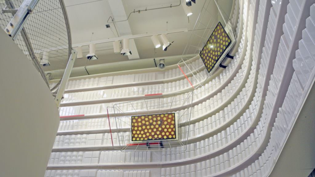 Insbesondere auf kleinem Raum empfiehlt es sich, die Geschichte in allen Dimensionen zu denken. Gerade die Nutzung verschiedener Höhenebenen birgt interessante neue Möglichkeiten für die Informationsvermittlung und das Markenerlebnis. Feine Inspiration für Produktpräsentationen.