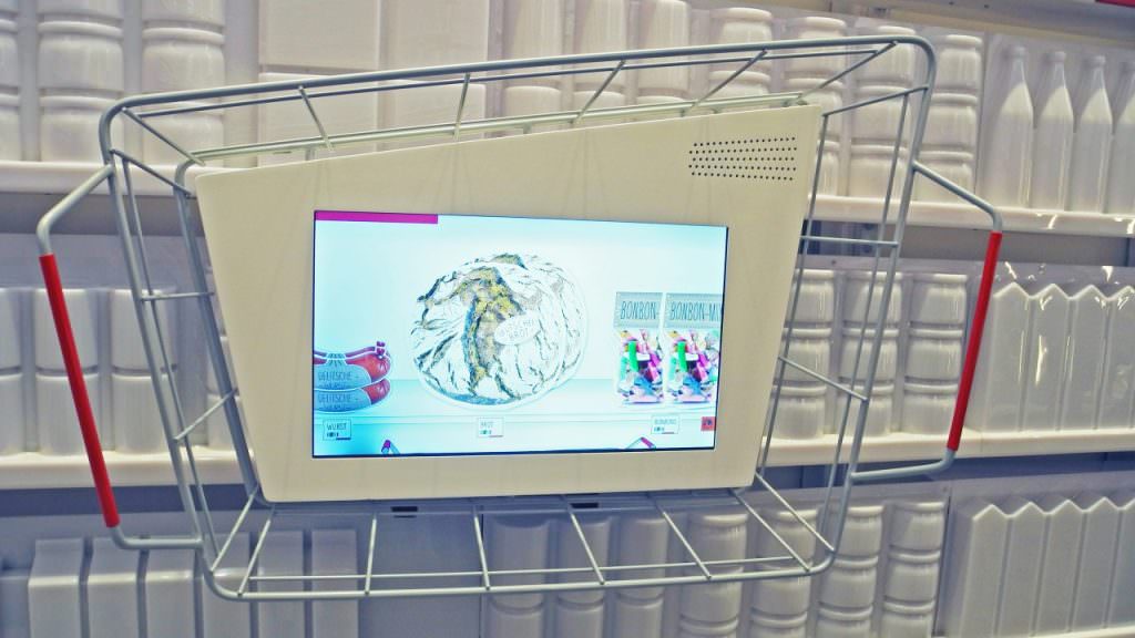 Stringente Erzählung in Architektur, Interaktionsbausteinen und Content. Über die Displays in den Einkaufswagen konnten sich die Besucher über Produkte und Herstellungsverfahren informieren.